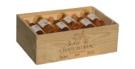 This desert wine shines thorugh the clear half-size bottle like a golden beacon and the bottle itself is topped with vibrant orange wax.